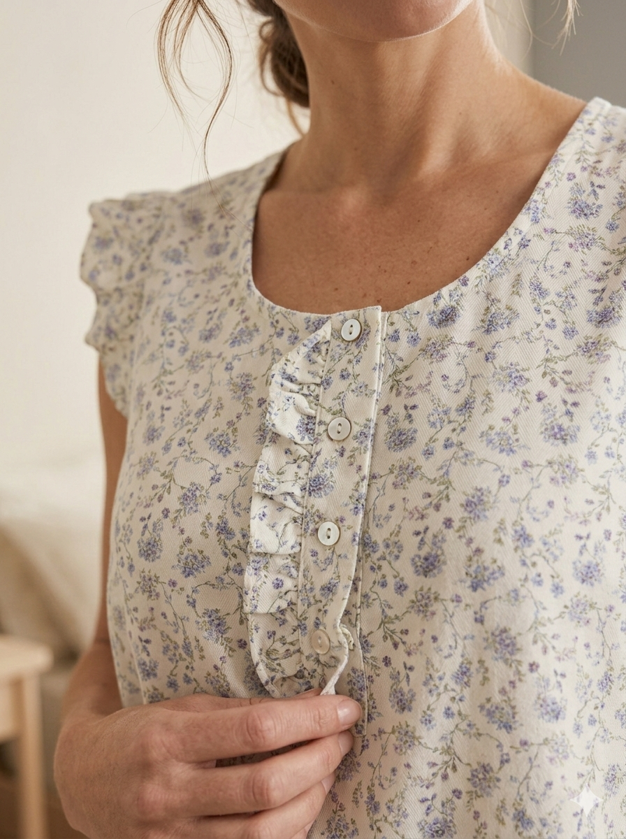 Vestido voladitos plumetí blanco flores celestes