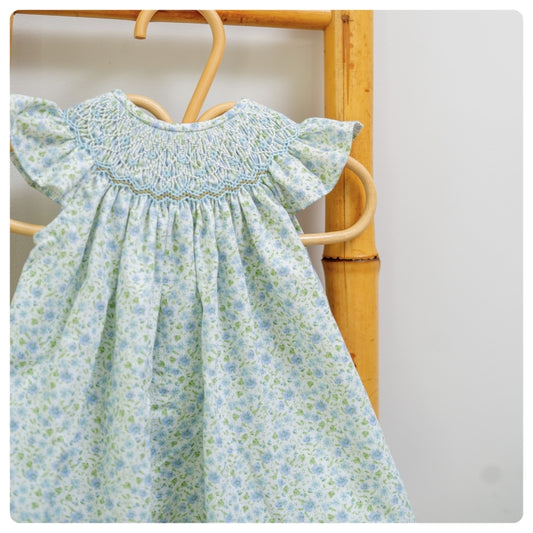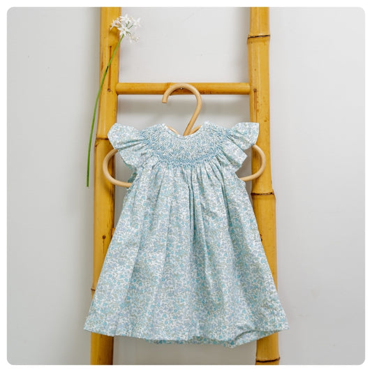 Vestido smock flores celestes y verdes con bombachudo