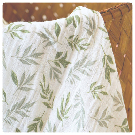 Muselina algodón y bambú blanca hojas verdes