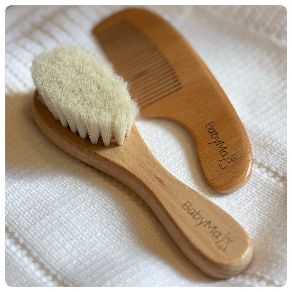 Cepillo de cerdas naturales ideal para recién nacidos y peine de madera.